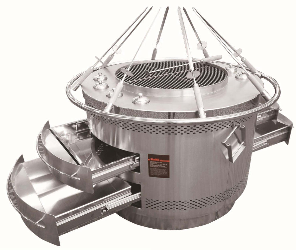 采用16mm厚疏孔热处理炭座铁板,经久耐用;配置抽屉式活动集灰盆及活动放炭盆,易清洁;木炭烧烤,配备重力活动轮及重力固定脚,使用方便。